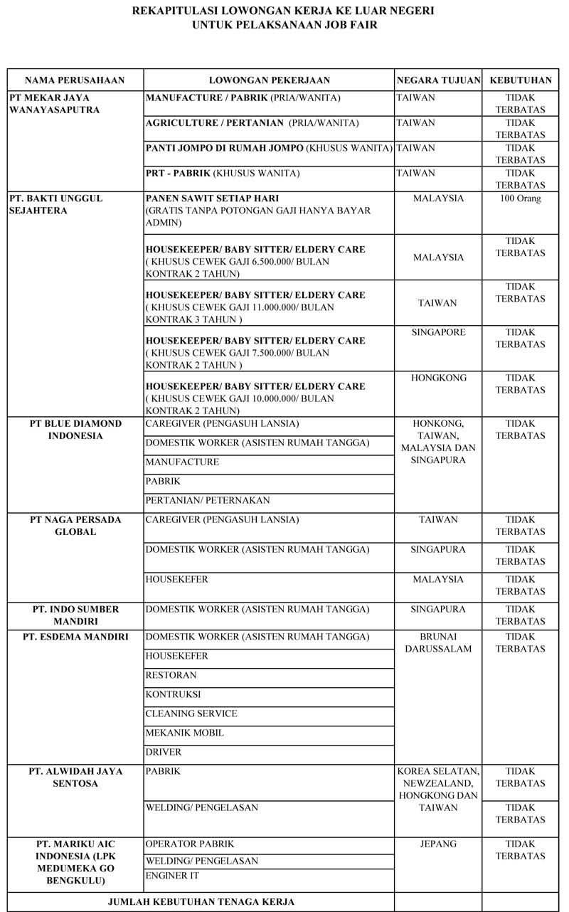 BACA JUGA:Melalui 'Job Fair', Disnakertrans Bengkulu Utara Tegas 'Jangan Jadi TKI Ilegal'