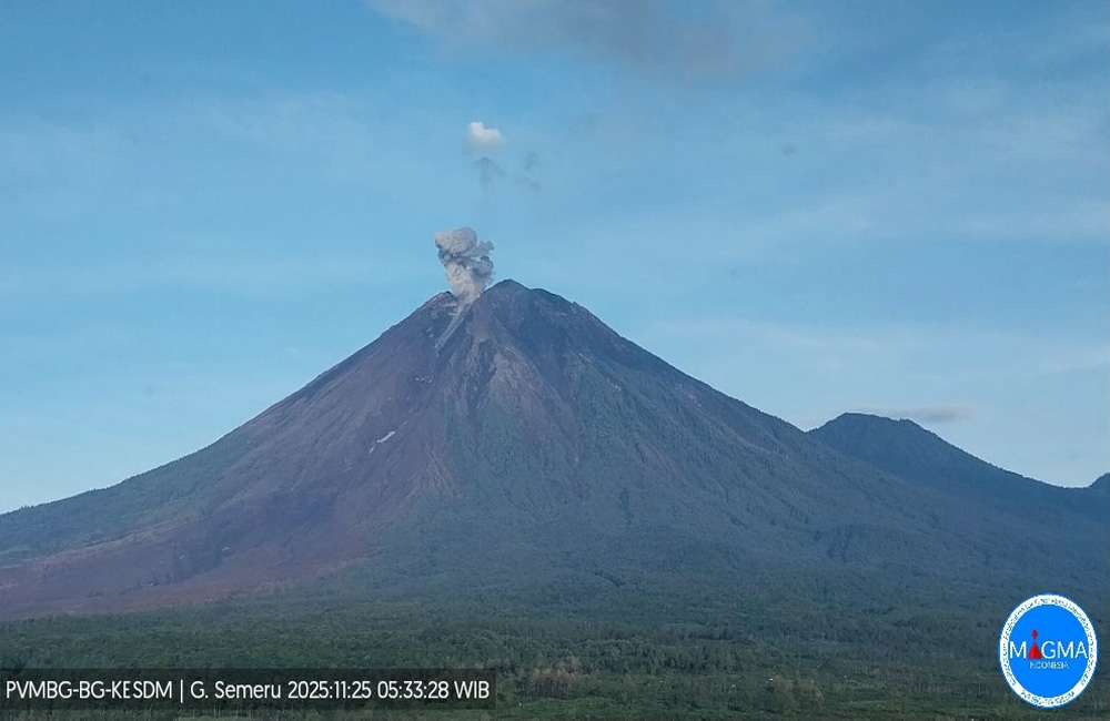 Gunung Semeru erupsi dengan tinggi letusan mencapai 1.000 meter di atas puncak pada Selasa (25/11/2025). Foto: Pusat Vulkanologi dan Mitigasi Bencana Geologi Kementerian ESDM-()-