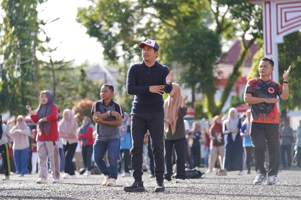 Bupati bersama Forkopimda serta ASN di lingkungan Pemkab BU saat senam dan apel gabungan, Jum'at kemarin.-Radar Utara/ Abdul Gafur-